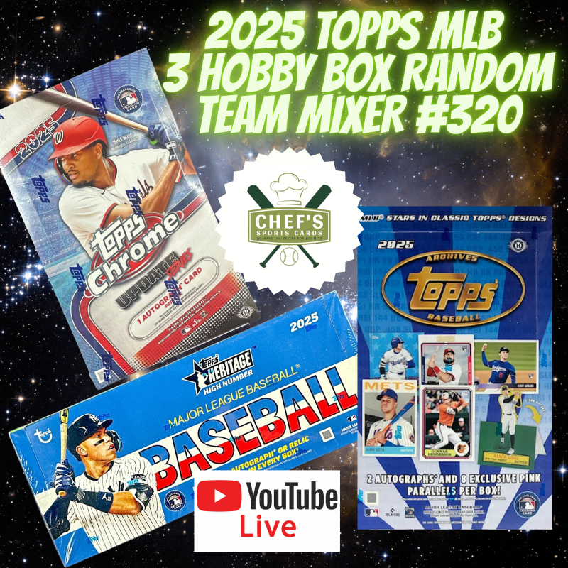 $14.99 – $44.99Price range: $14.99 through $44.992025 TOPPS MLB 3 HOBBY BOX RANDOM TEAM MIXER BREAK #320
